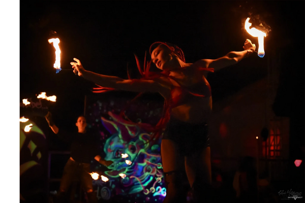 Whether for events, shows, or ambient performances, Audrey's fire dancing brings an unforgettable spark to any occasion. With her artistry and control, she transforms the primal element of fire into a breathtaking spectacle that engages and enchants.
